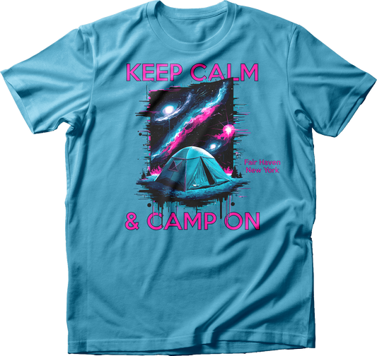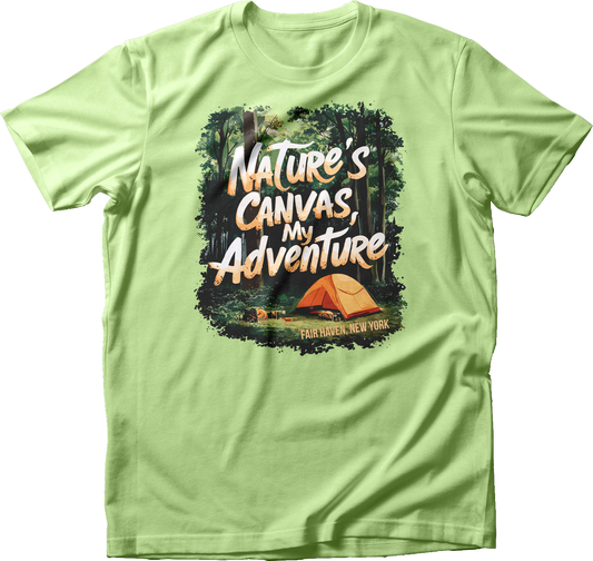 Shirts with fun designs that honor the centuries-old tradition of camping at one of the many wooded campgrounds in Fair Haven and Sterling, NY.