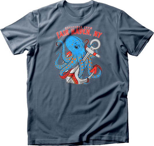 Greetings from Fair Haven, NY Dark Blue Octopus T-Shirt