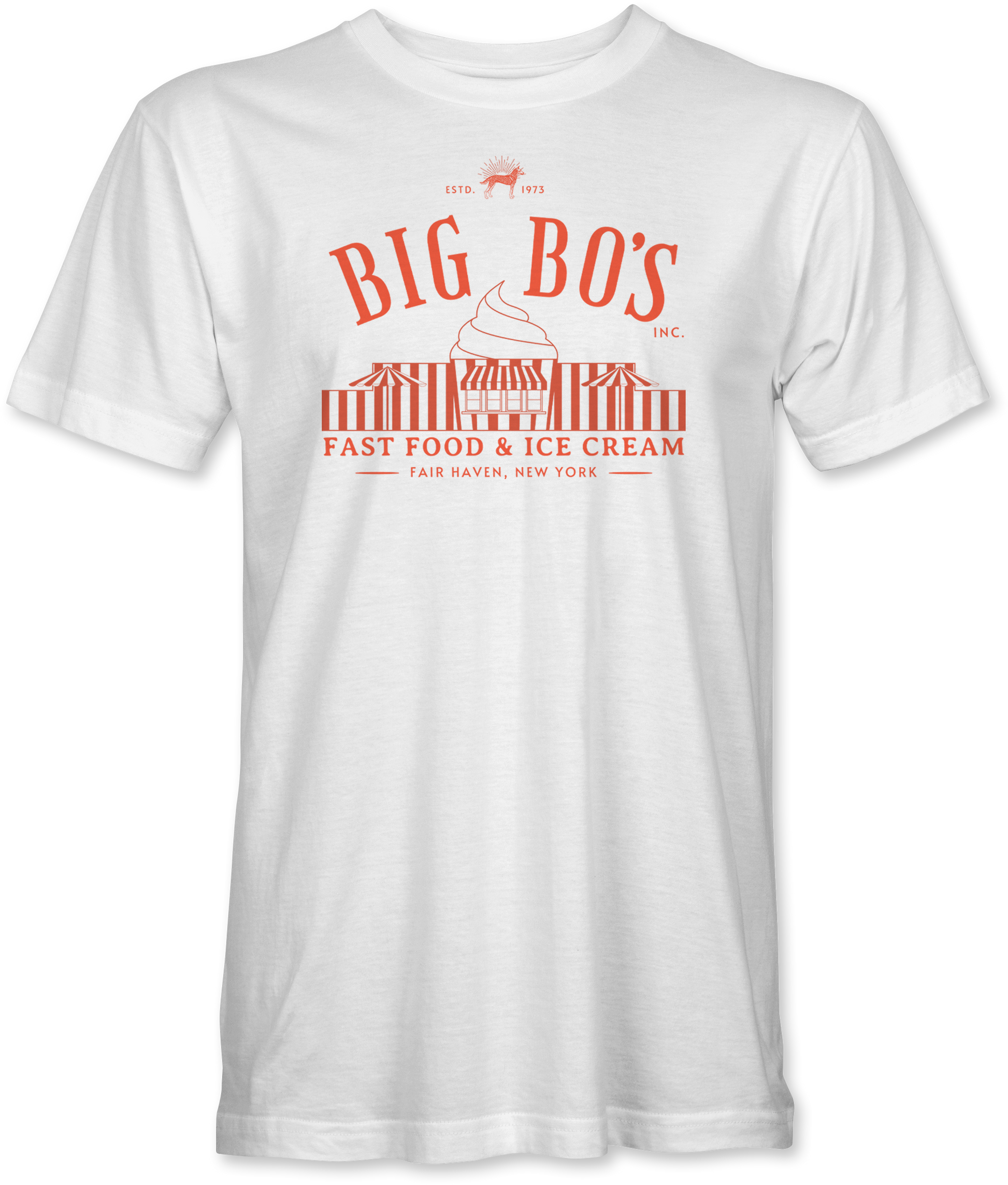 Rock a piece of Fair Haven history with our Big Bo's T-Shirt! This Gildan Softstyle tee celebrates the iconic red and white cone-shaped ice cream parlor that once defined downtown with its vintage red logo proudly displayed on the front. Available in multiple colors, it's the perfect way to show your nostalgia for this beloved local landmark while staying comfortably stylish.