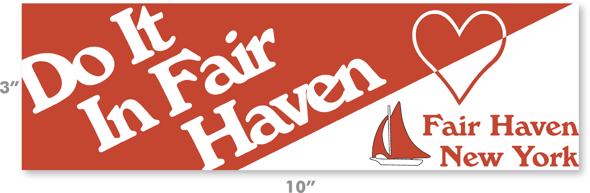 Celebrate your Fair Haven pride with this nostalgic recreation of the iconic 1980s bumper sticker that once plastered cars throughout town. Originally designed by the Fair Haven Area Chamber of Commerce to promote their beloved Winter Carnival, this 10" x 3" sticker brings back those glory days. Featuring durable permanent adhesive vinyl on a white background, it sticks securely to bumpers, laptops, water bottles, and any surface that needs a dose of hometown spirit — rain or shine. Show the world where your loyalty lies!