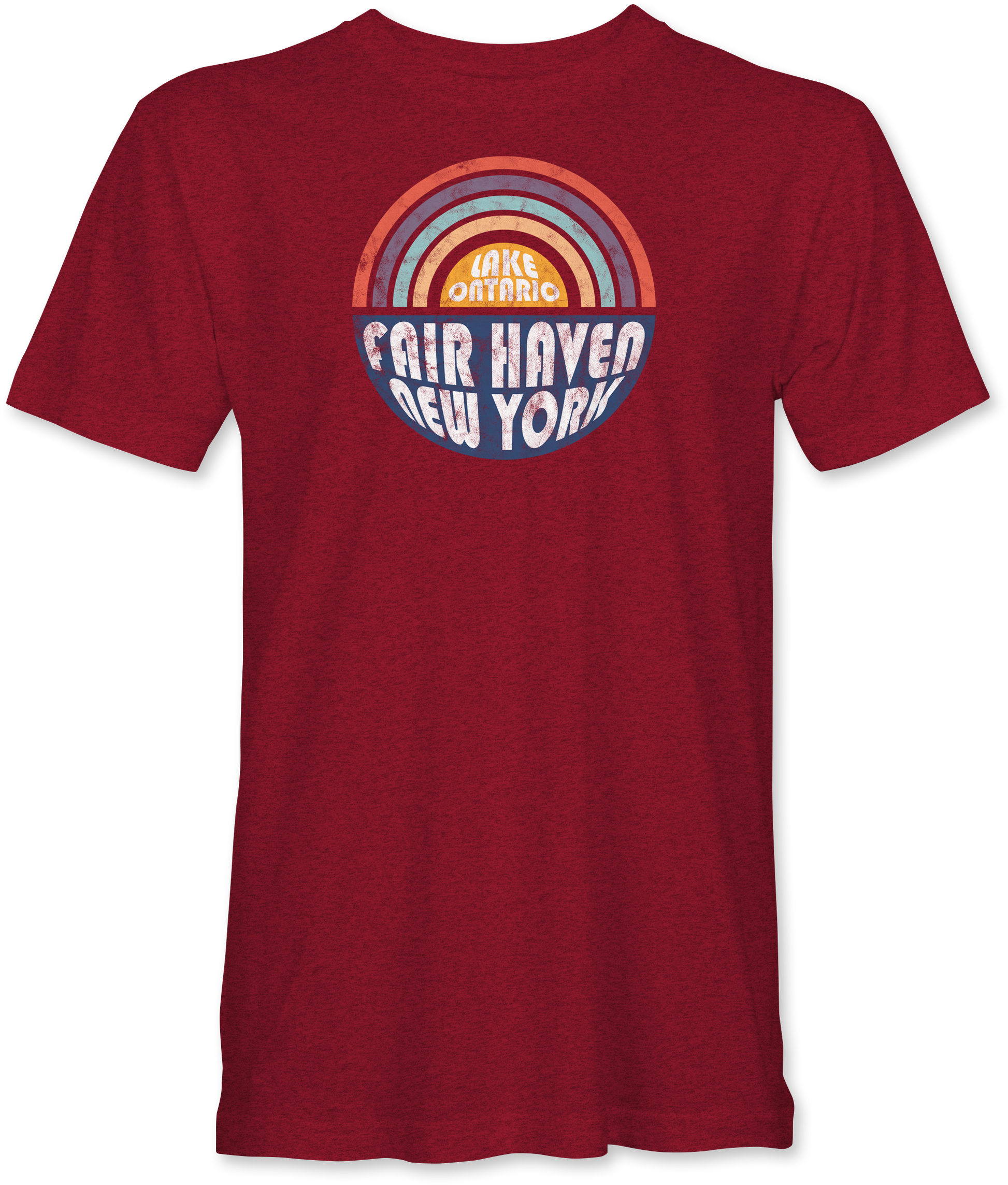 Dive into nostalgia with this Fair Haven tee that captures the magic of lakeside summers past. The eye-catching concentric sunset motif paired with retro typography celebrates those golden days by Lake Ontario's shores in true 1980s style. Crafted from ultra-soft Gildan Softstyle fabric with intentional distressing for authentic vintage charm, this shirt delivers comfort without sacrificing character. Whether you're reliving memories or discovering Fair Haven's retro appeal for the first time, this tee lets your love for the shoreline shine through. Find your perfect fit and color — there's something for everyone.