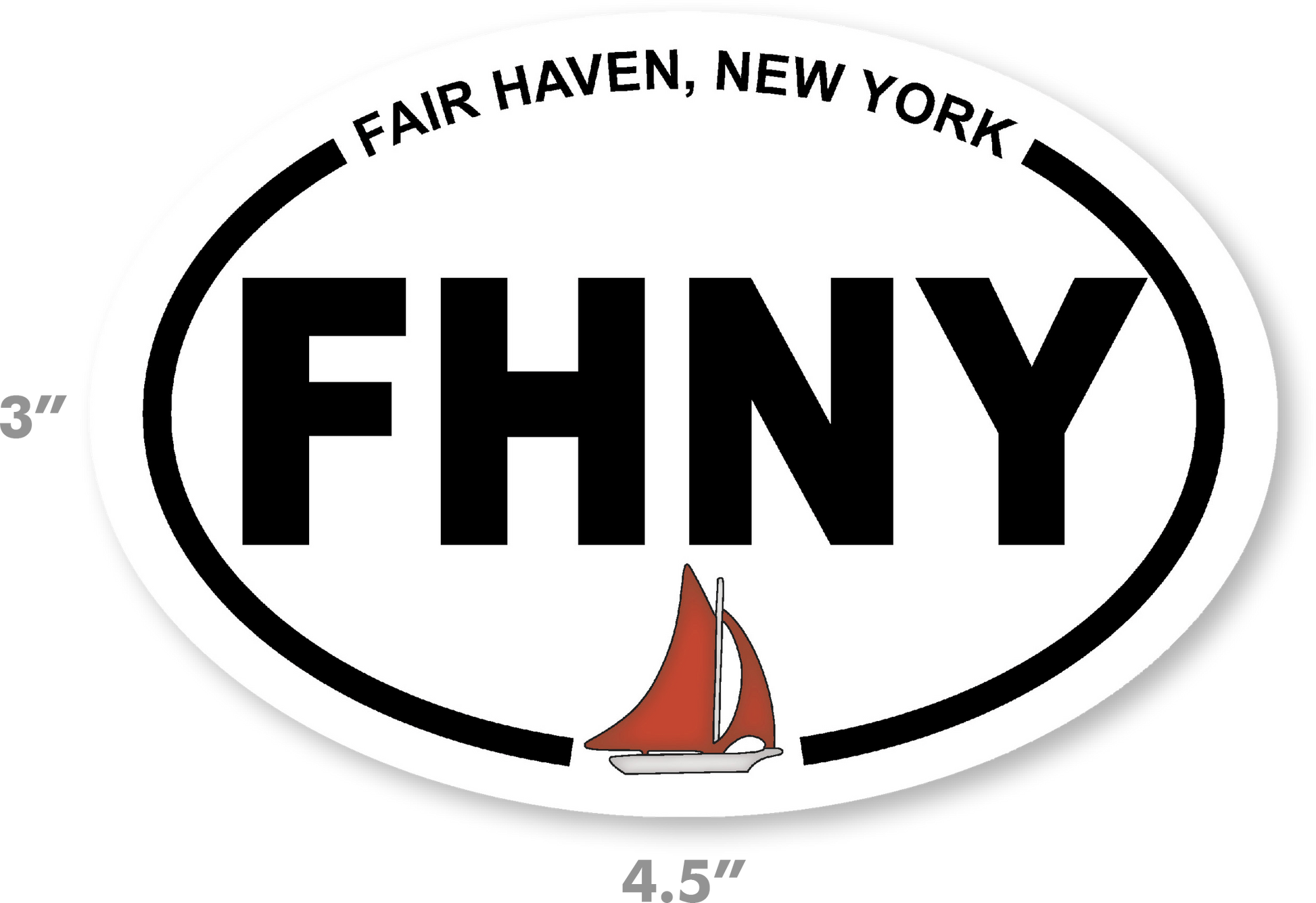 Declare your Fair Haven allegiance with this timeless 4.5" x 3" white oval sticker! Featuring the iconic Red Sail nestled within the classic "FHNY" design, it's the ultimate way to rep your favorite lakeside destination. Crafted with permanent adhesive vinyl, this sticker grips tight to car windows, laptops, water bottles, and beyond — indoors or out. Let everyone know where your heart belongs!