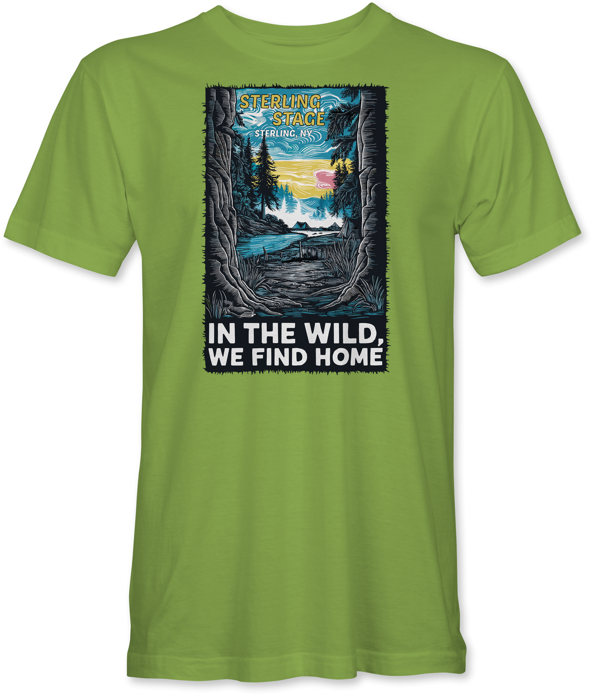 Get groovy in this Sterling Stage tee! With a campfire design celebrating the misfits that we are, this ultrasoft Gildan Softstyle T in Kiwi or Antique Sapphire will keep you cozy while jamming to psychedelic tunes. Say it with us - "In the Wild, We Find Home".