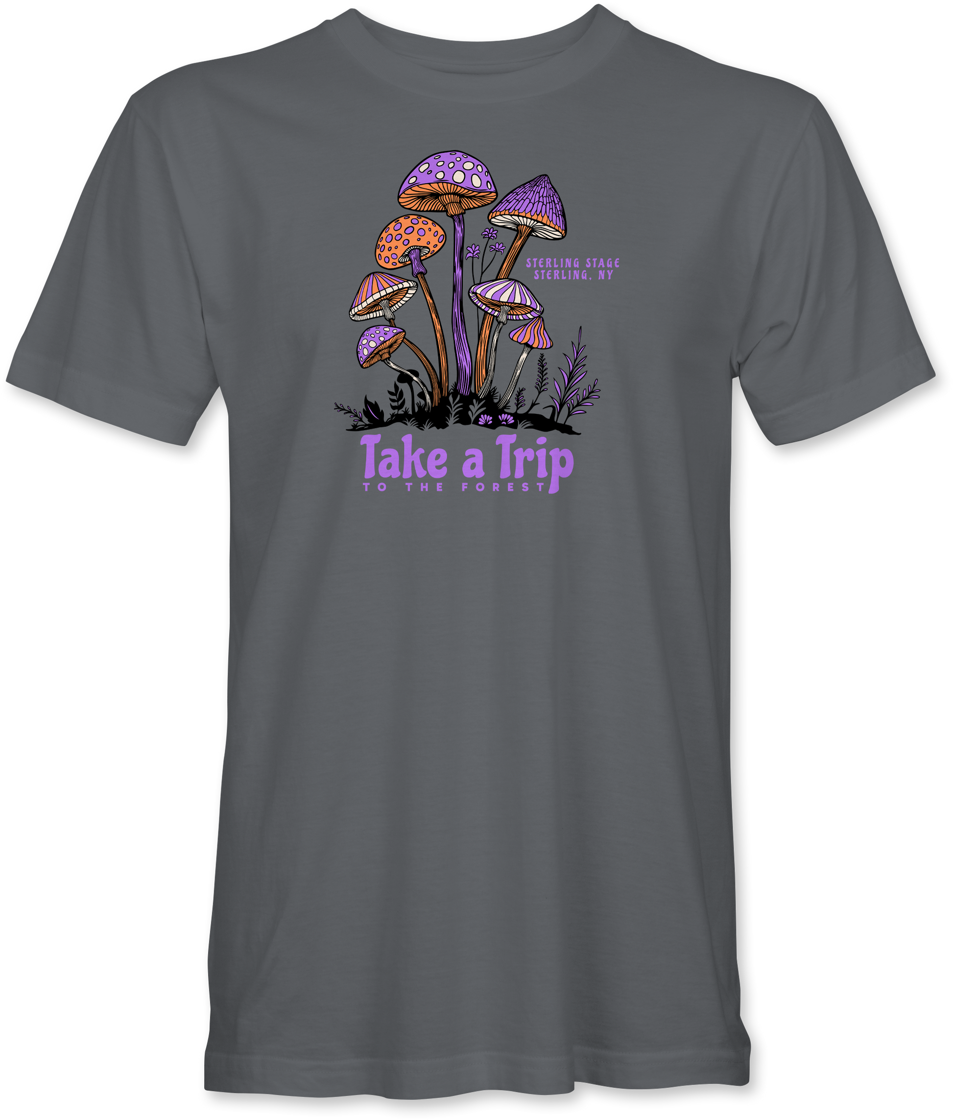 Get funky with fashion and celebrate Sterling Stage's 30th anniversary in this super cozy Take a Trip tee! Featuring a groovy shroom design and a playful invitation to spend time in the forest, this ultrasoft unisex Gildan Softstyle T is available in Gold or Charcoal. The ultimate choice for getting down to some psychedelic beats!