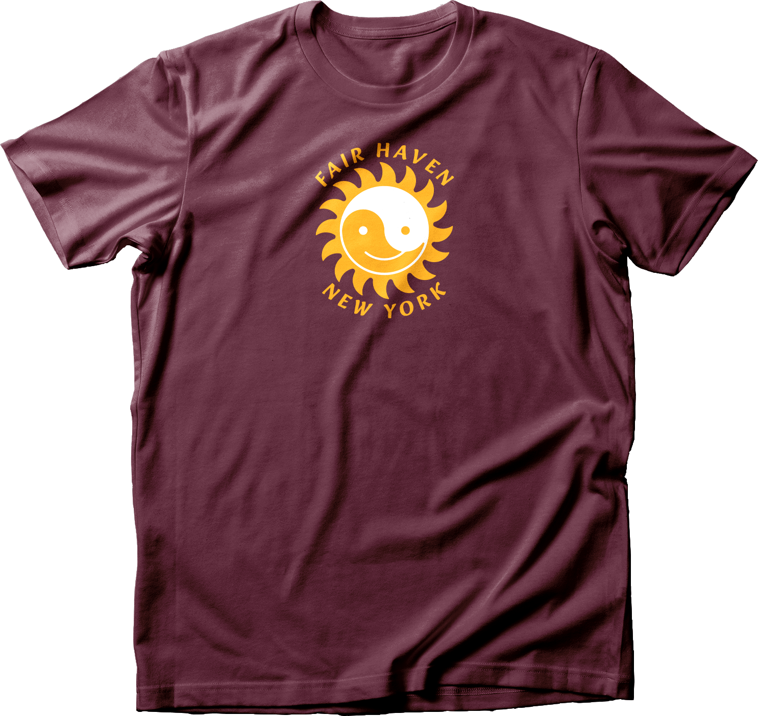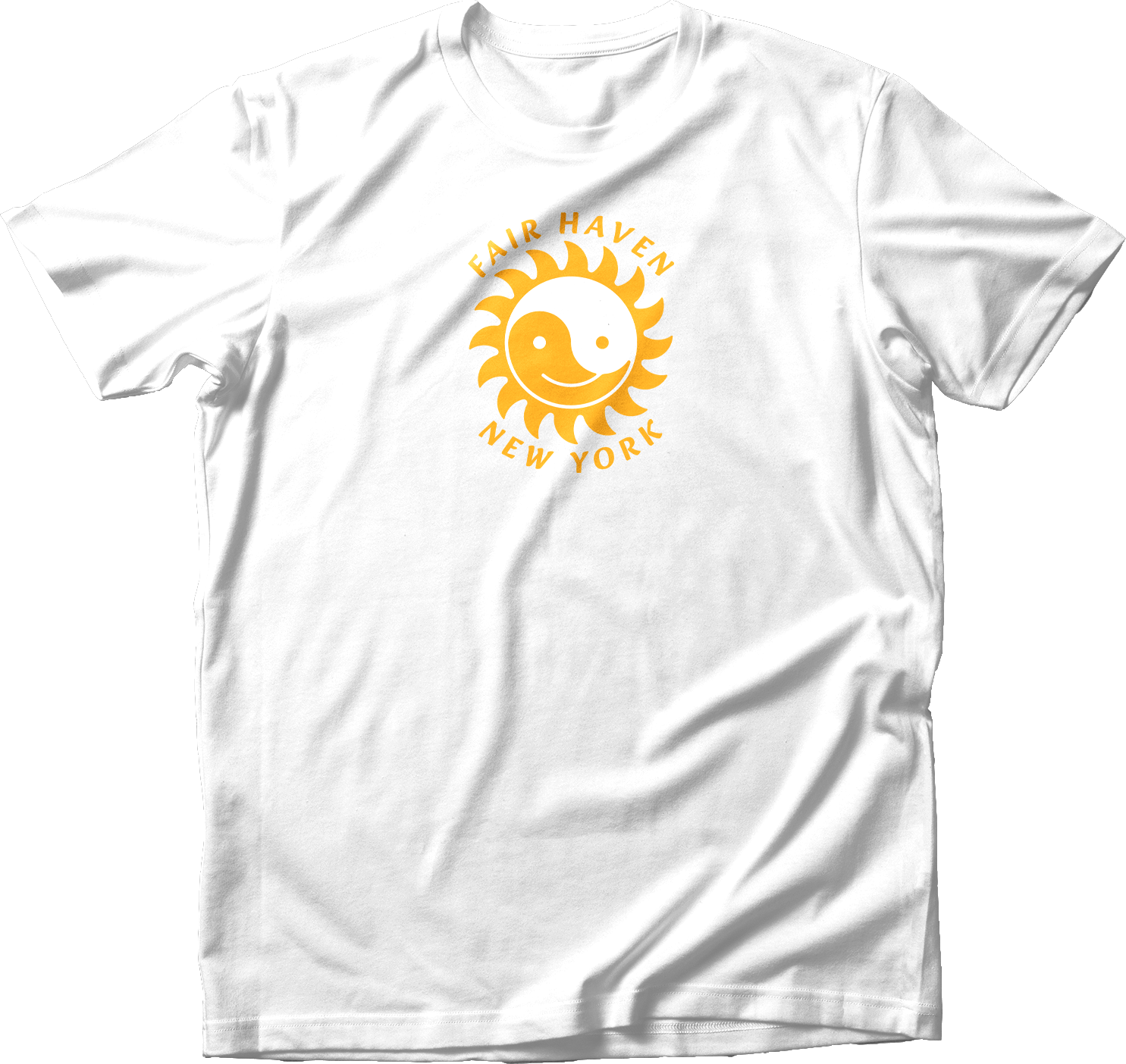 This fun design features a smiling sun branded with the Chinese symbol for balance, the taijitu. The design is printed in full color on our ultrasoft Gildan Softstyle short-sleeve t-shirts, available in your choice of colors.